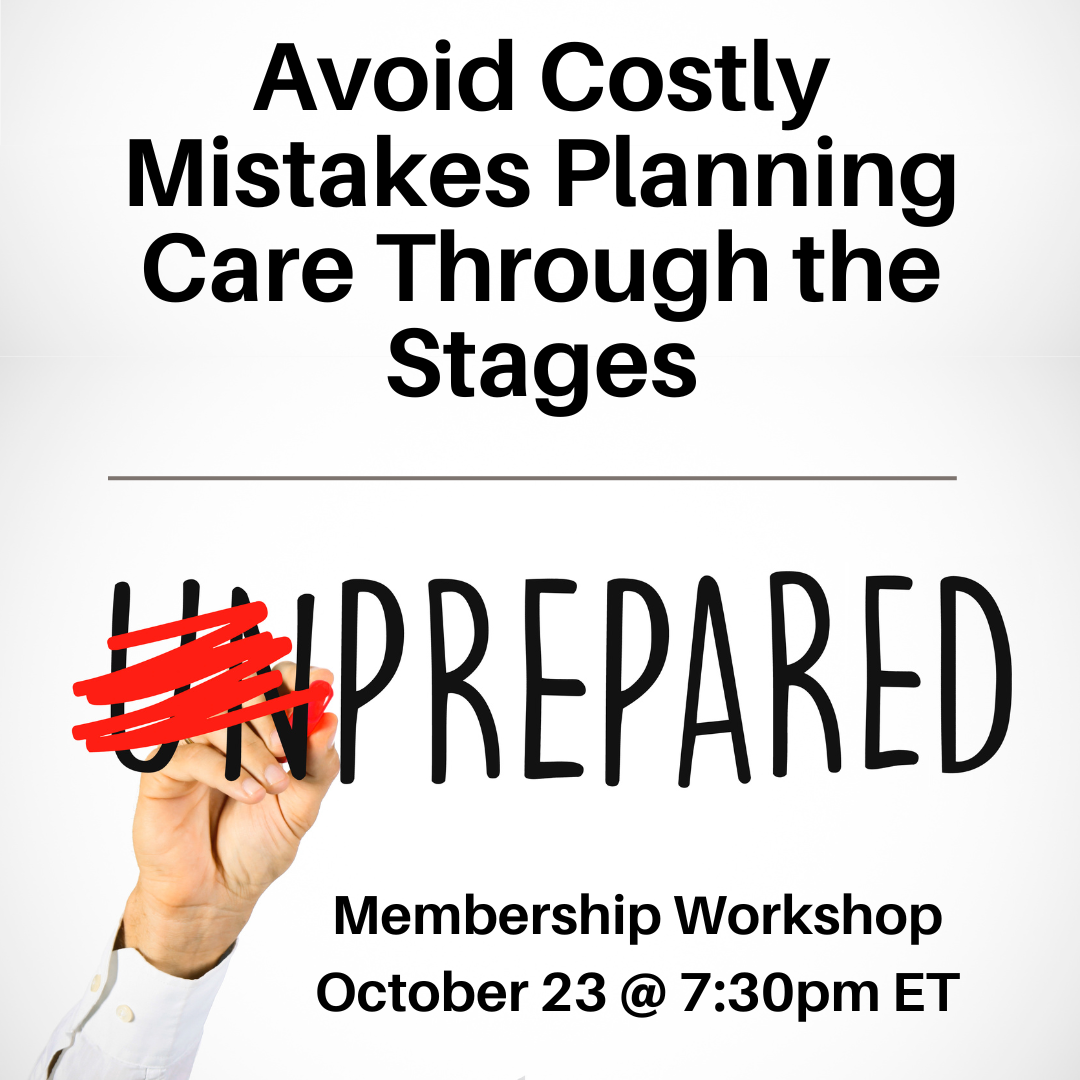 On Thursday, October 23 at 7:30pm ET, we’re hosting a workshop called “Avoid Costly Mistakes Planning Care Through the Stages” to show you how to avoid Medicaid pitfalls and plan pay for long-term care without draining everything you’ve worked for.